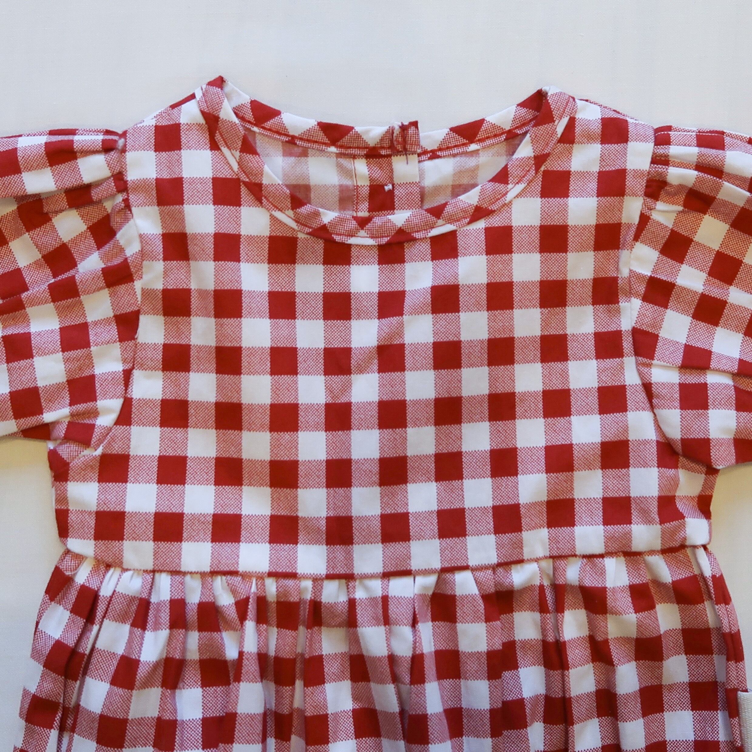 赤チェック ロンパース
