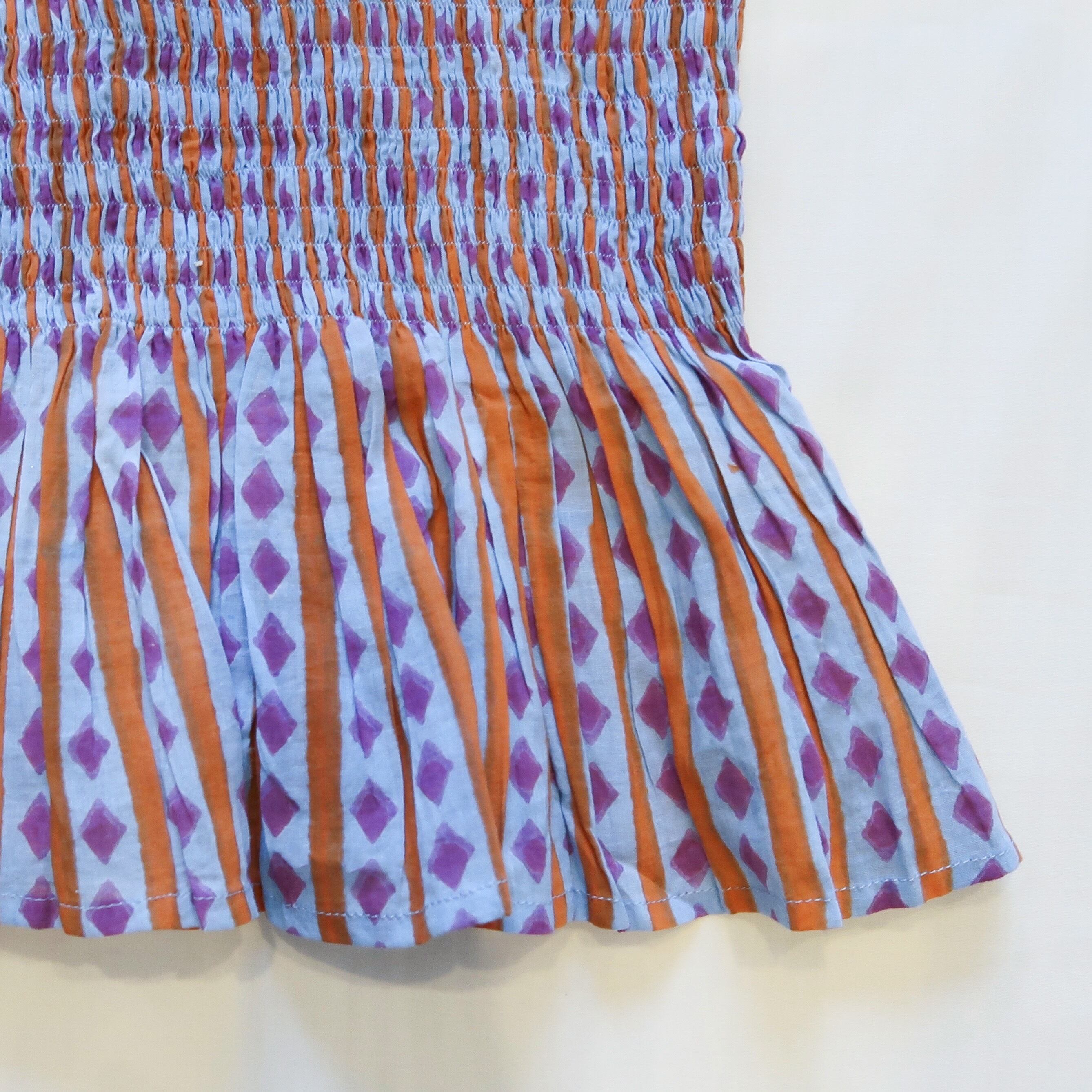 インド伝統のプリント技法ハンドブロックプリントで、ダイアのストライプ柄が施されております。