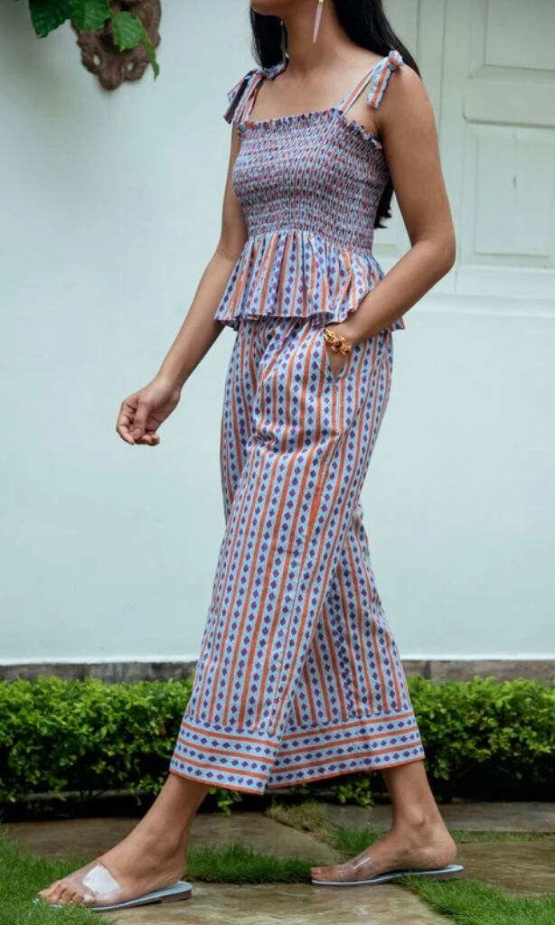 インドの綿生地のハンドブロックプリントのトップス コットンパンツのセットアップです。