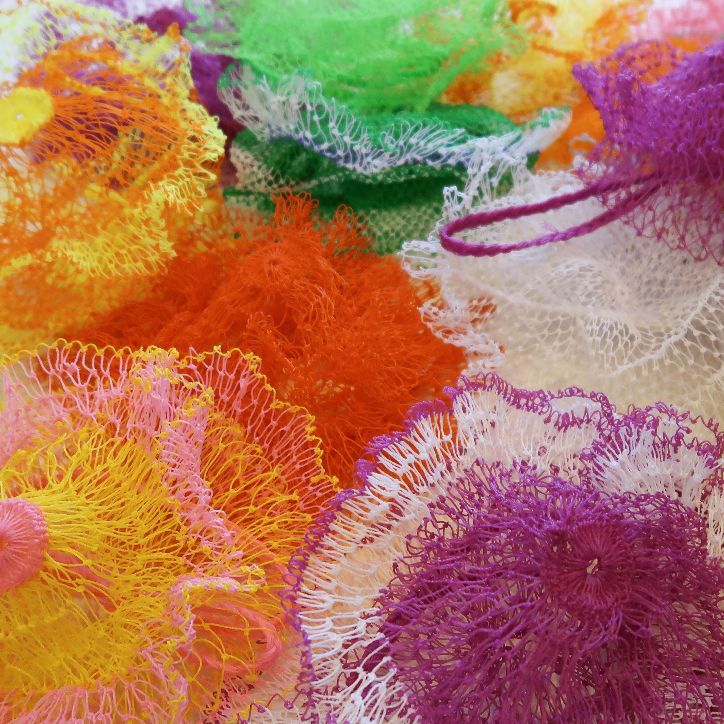 ハッっと目を惹く鮮やかなカラーのあみバッグ。15色のご用意となります。